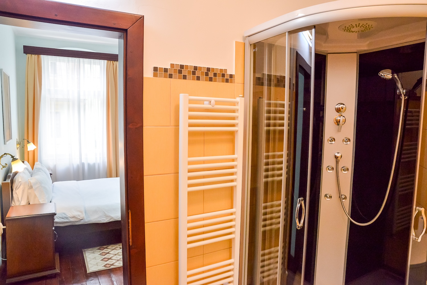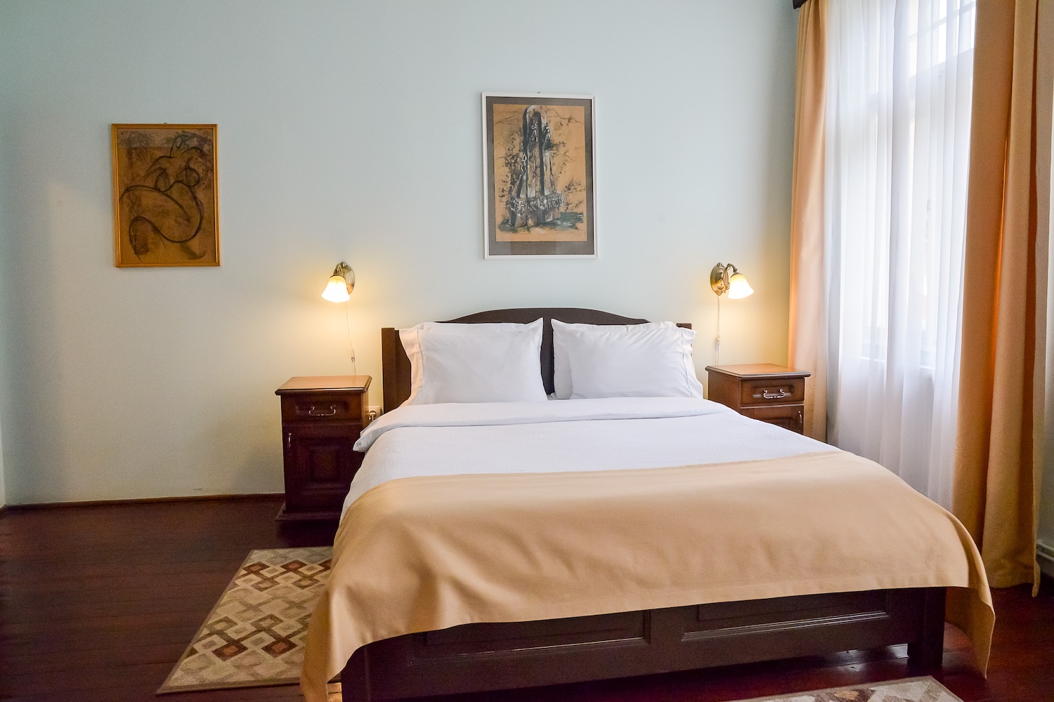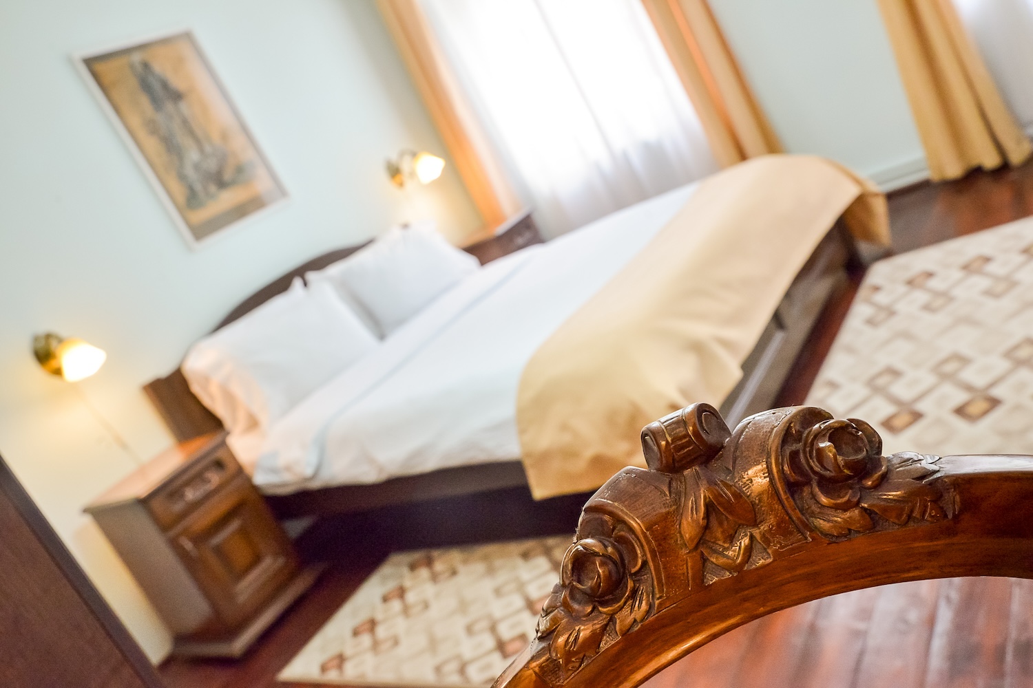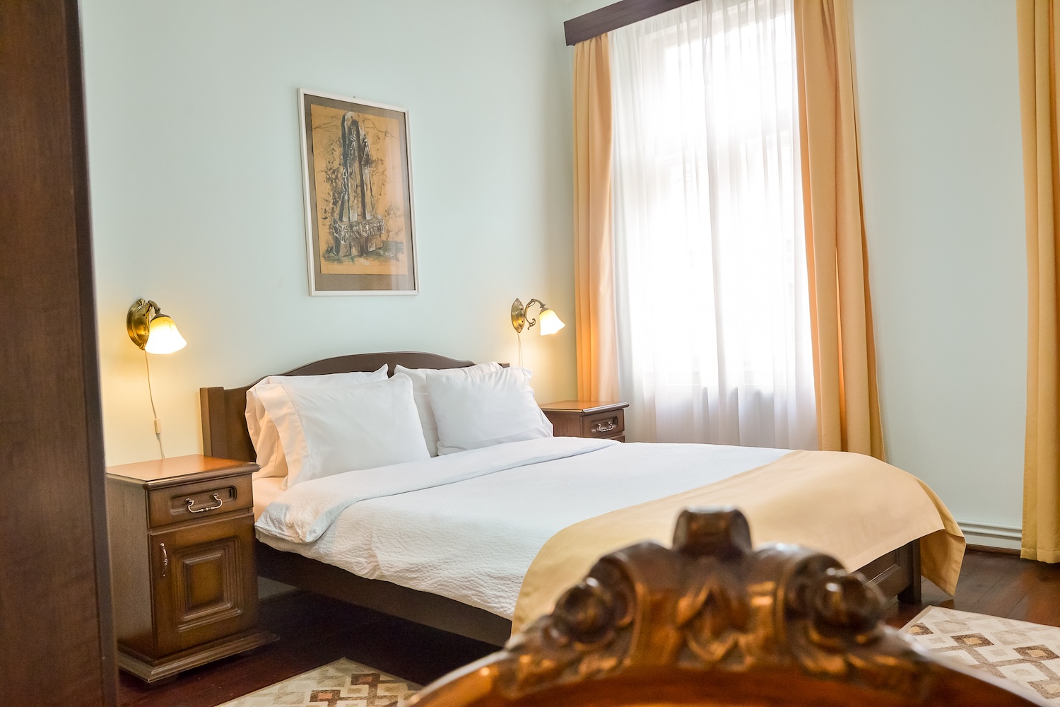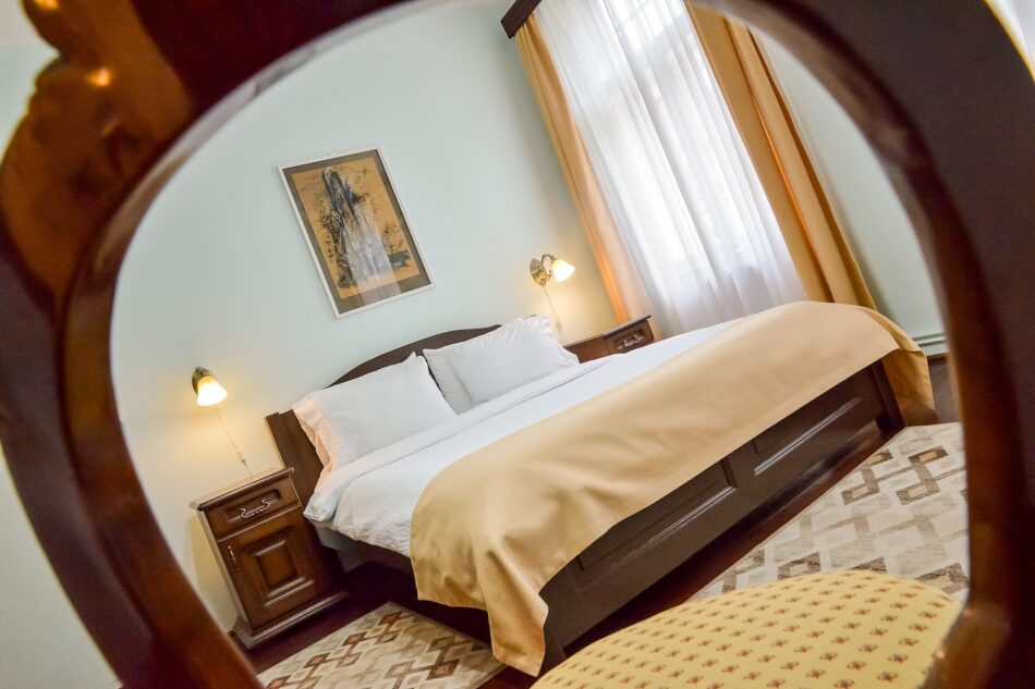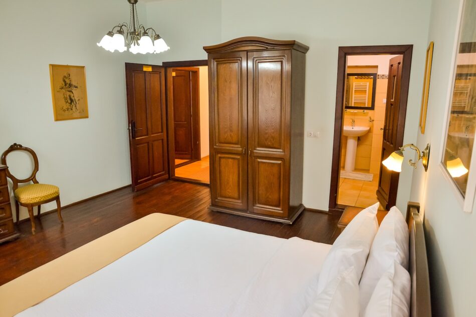 Camera dubla spațioasă cu pat king size, baie proprie si acces terasa. Situata la etajul 1 al imobilului. Max. 2 persoane.